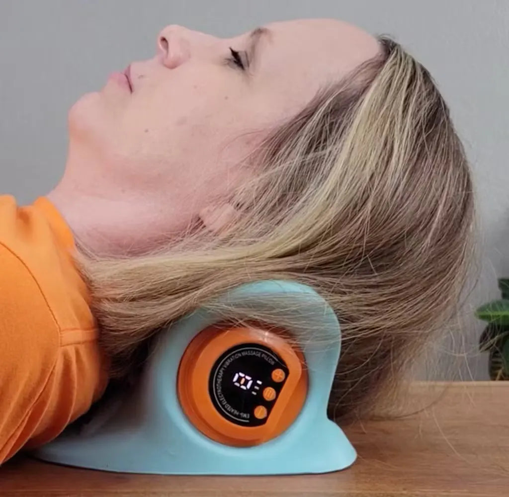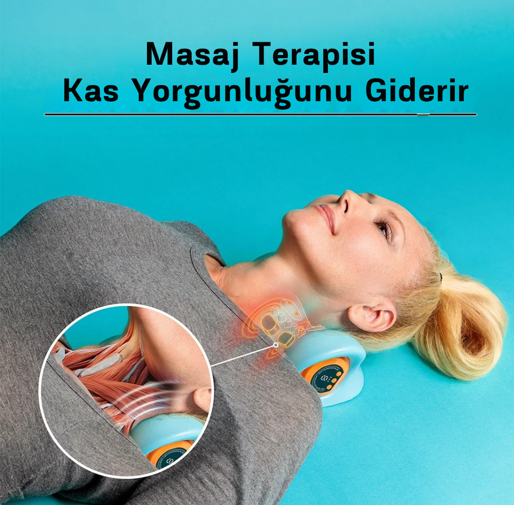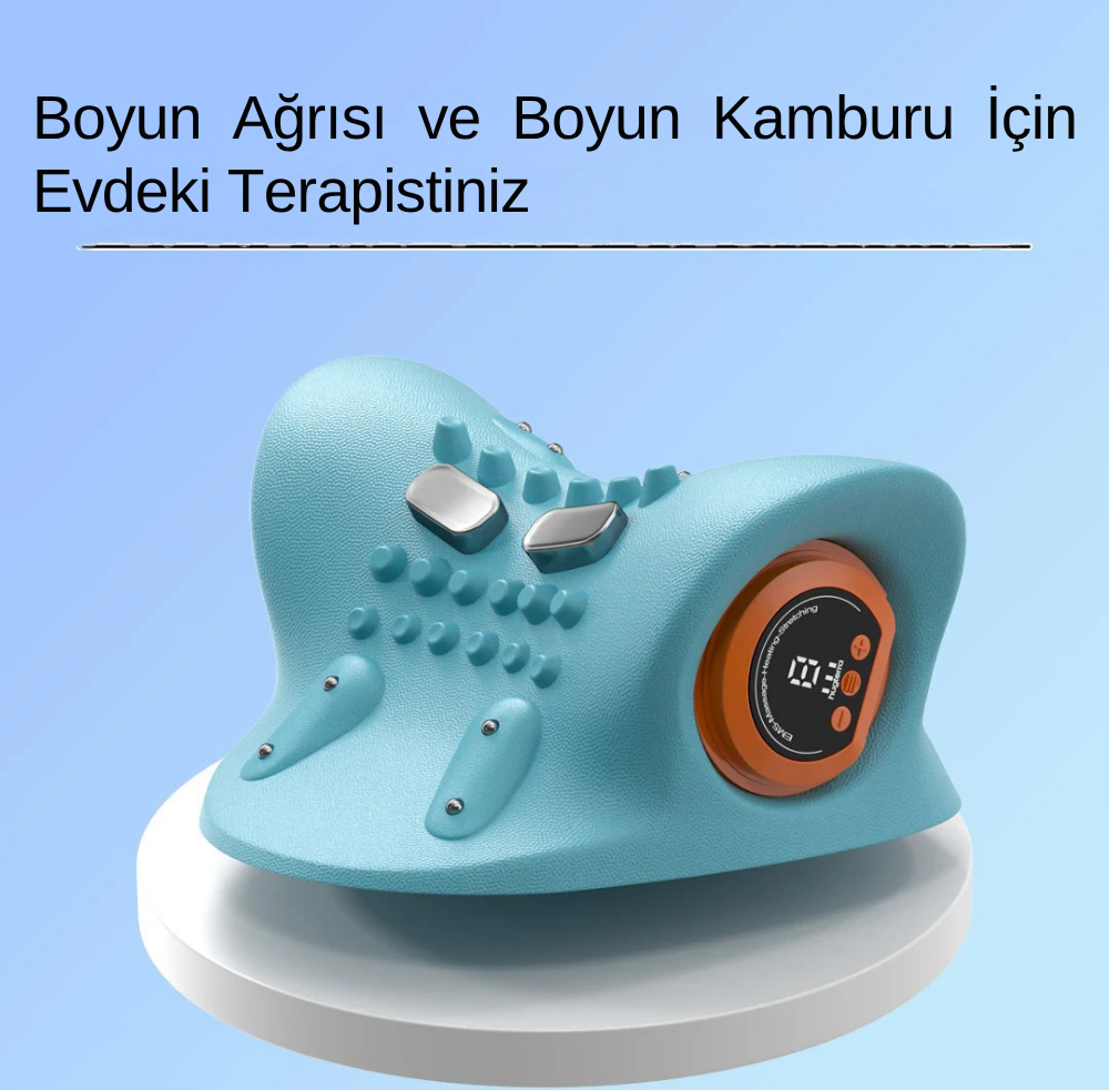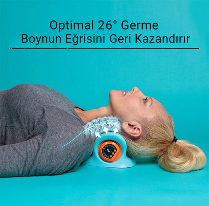 Cihazın üzerine uzandığınızda, boynunuzu 26°’lik ideal açıyla gerer — bu açı, omurgayı rahatlatmak ve baskıyı azaltmak için en etkili açıdır. Aynı anda, küçük elektriksel impulslar kaslarınızı kasılmaya zorlar ve doğal bir pompa gibi davranarak boyun bölgesinde kan dolaşımını artırır.