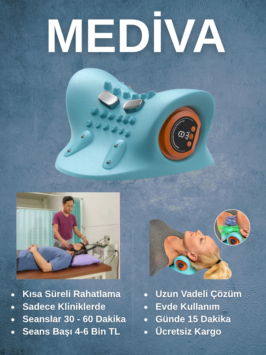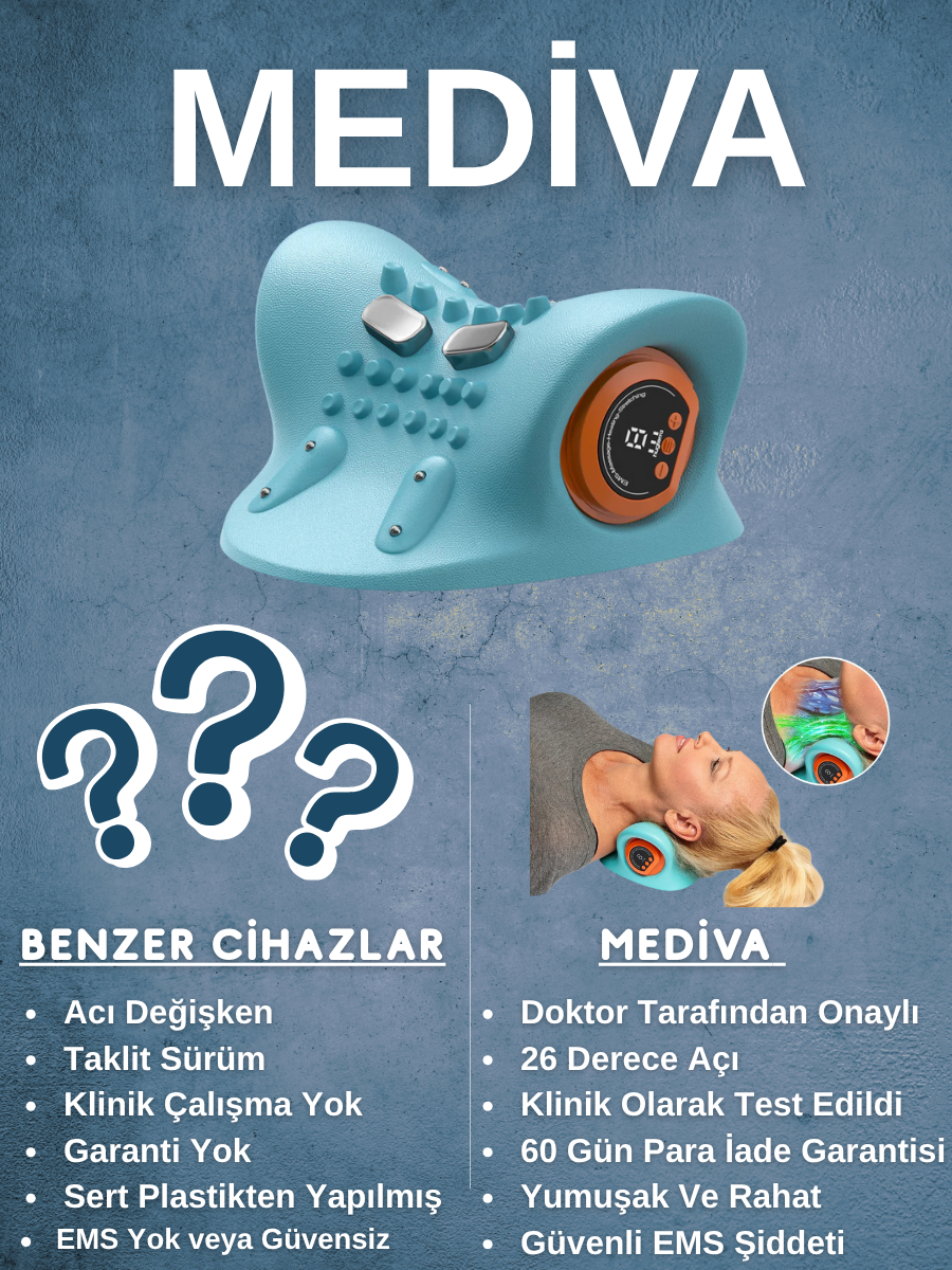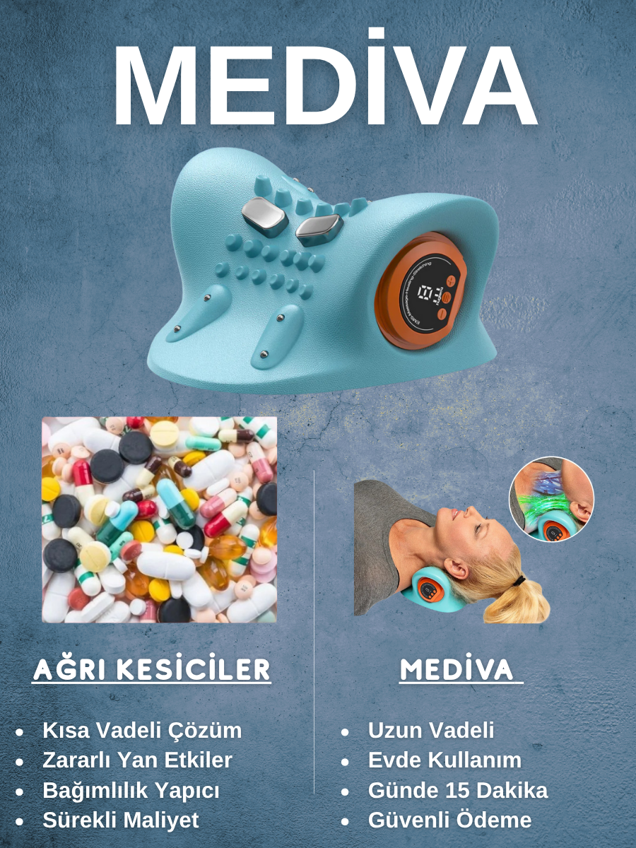 Mediva, boyun, omuz ve üst sırt ağrıları, boyun kamburu (küçük kambur), öne eğik baş duruşu, boyundaki sinir sıkışmaları, TMJ (çene eklemi sorunları), gerilim tipi baş ağrıları ve migrenlerin tedavisinde idealdir.