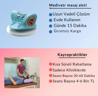 Bu sayede kaslar gevşer, doğal pozisyonuna döner, boyun omurlarındaki baskı ortadan kalkar ve boyun ağrısının temel nedeni giderilir.