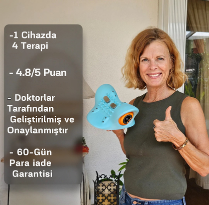 İşte bu nedenle bu cihazı geliştirdik. Piyasada kısa süreli rahatlama sağlayan birçok cihaz olduğunu fark ettik, ancak kalıcı çözüm sunan hiçbiri yoktu. Bu yüzden boyun ağrısı, sertlik, baş ağrıları, boyun kamburu ve öne eğik baş duruşu gibi sorunlara kalıcı sonuçlar sunmak amacıyla kendi cihazımızı geliştirdik.